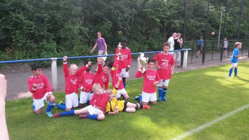 Grolse Boys E1 heeft het seizoen mooi afgesloten. Na het kampioenschap in de competitie werd ook het toernooi van Erix op de naam geschreven. Twee keer kampioen, de dubbel, heel knap gedaan!