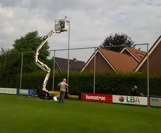De voetbalcompetitie mag dan nu wel ten einde zijn, op 't Wilgenpark is er nog volop bedrijvigheid! De vele vrijwilligers zijn volop in de weer om alles in gereedheid te brengen voor het nieuwe seizoen. Meestal het gangbare onderhoud, echter dit jaar is de keus gemaakt om de ballenvangers een beurt te geven. Met name het extra hoge ballennet op het hoofdveld had een opknapbeurt nodig. Dit heeft wat moeite en werk gekost maar mede door Mike te Boome van het gelijknamige schildersbedrijf die ons de hoogwerker ter beschikking heeft gesteld is de ballenvanger weer helemaal in orde! Uiteraard zien wij liever dat de ballen in het doel verdwijnen, er kan ook weer een bal gemist worden.....